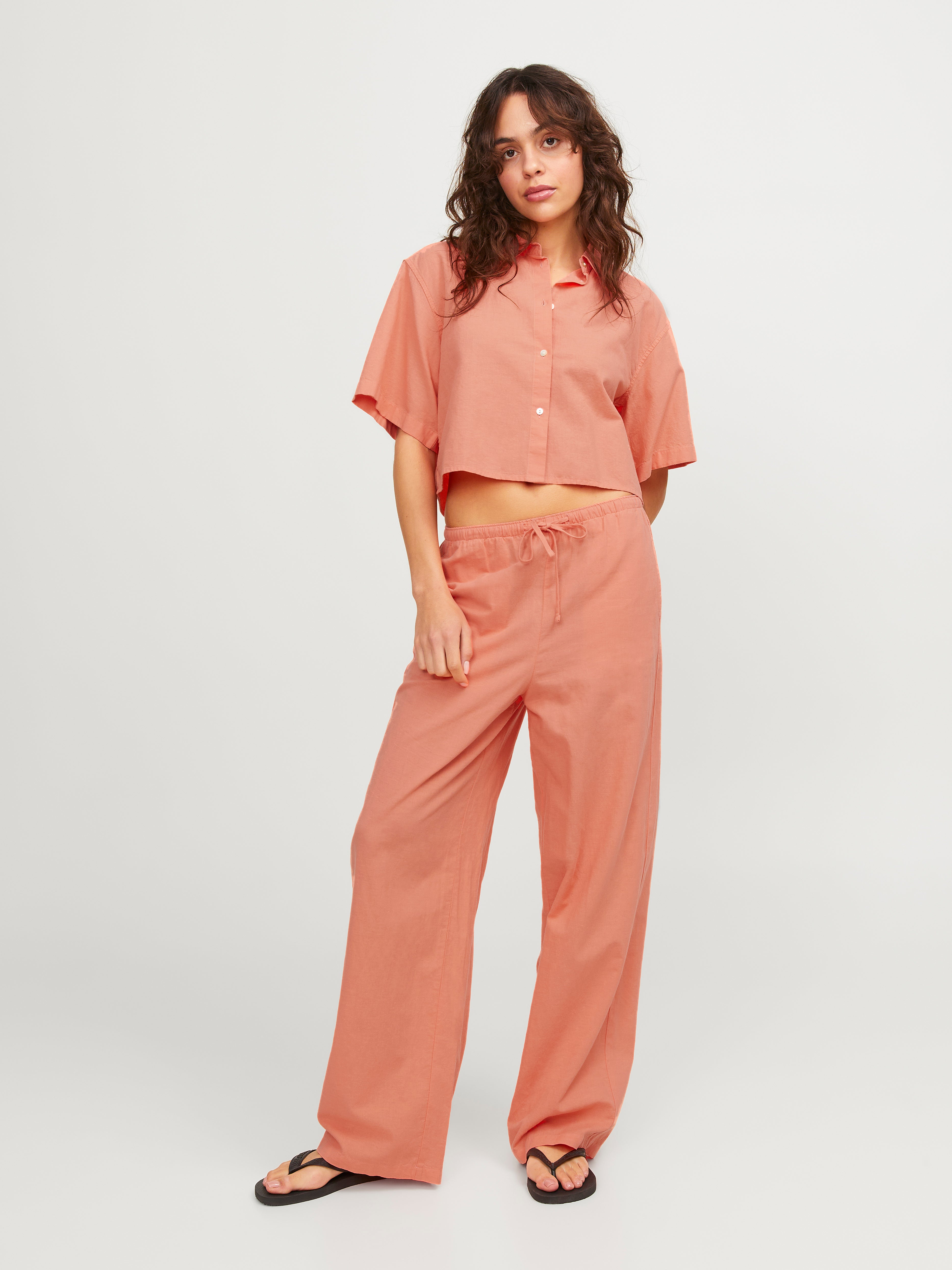 Kadın Crop Keten Gömlek - Lulu