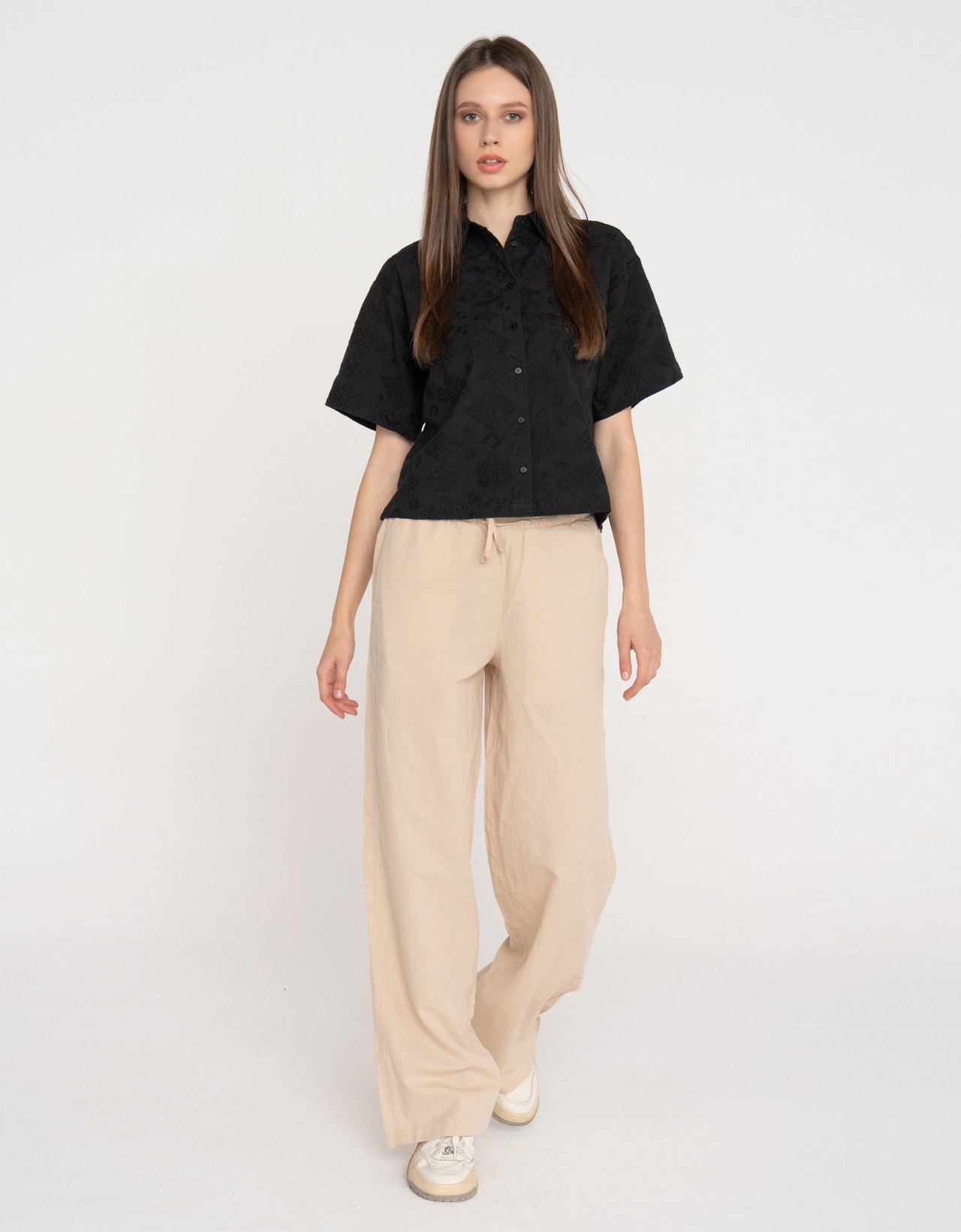 Kadın Rahat Kalıp Keten Pantolon - Flora
