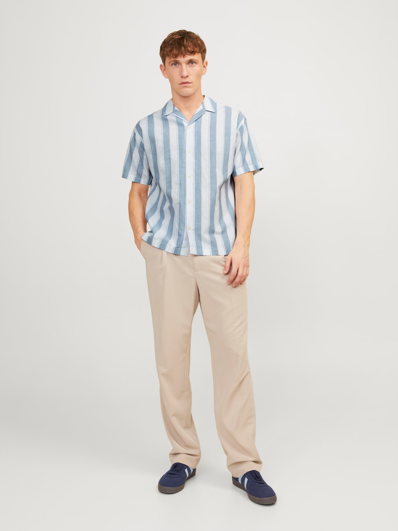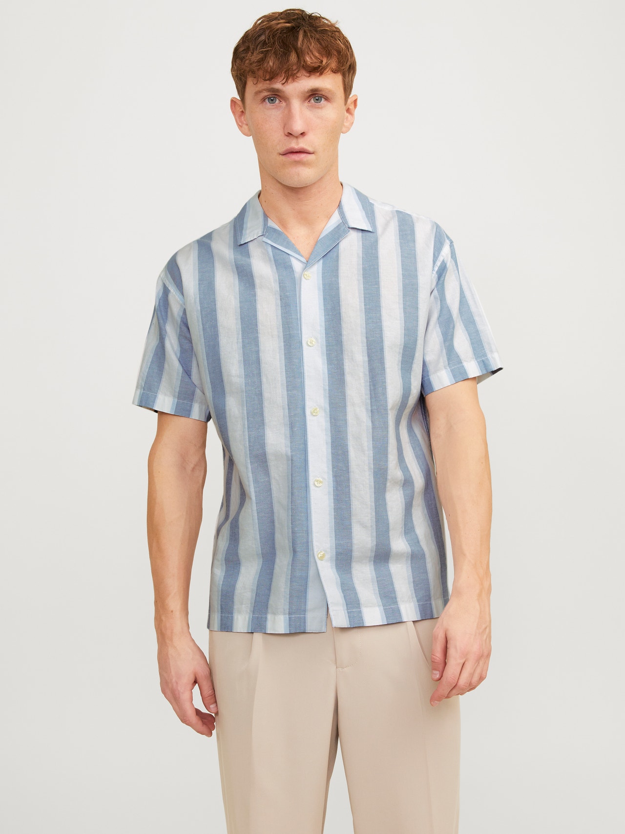 Erkek Keten Karışımlı Çizgili Gömlek - Ccsummer