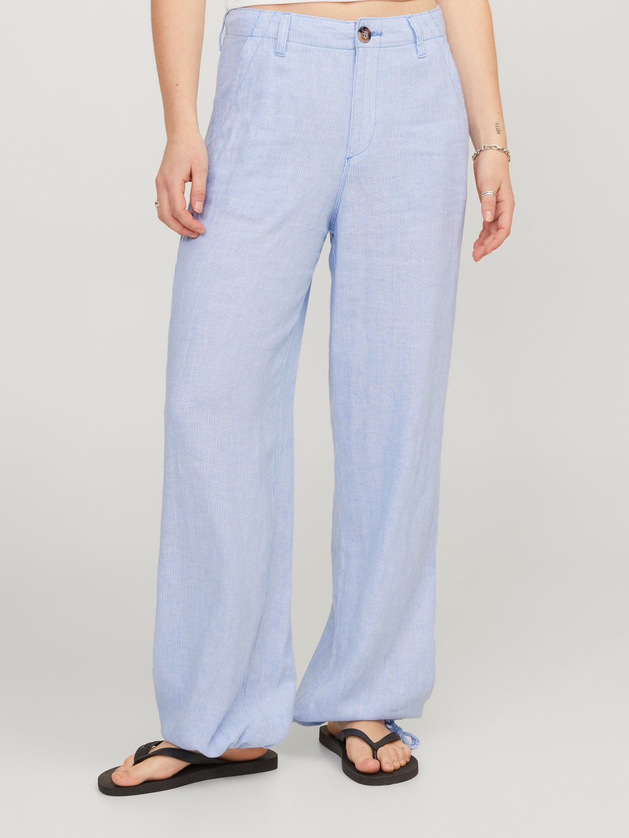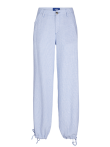 Kadın Çizgili Rahat Kesim Keten Pantolon - Raya