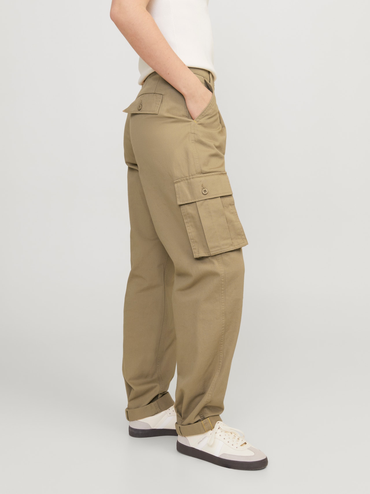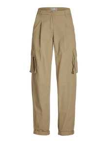 Aslen İngiliz ordusu için tasarlanan kargo pantolonlar, bacak kısmındaki fazladan birkaç ceple daha pratiktir. Hem gündelik bir görünüm hem de şık bir kıyafet için mükemmeldir çünkü her şey nasıl tarz yaratacağınıza bağlıdır. Dokuma kumaş; örgü kumaşlar gibi esnemeyen güçlü ve dayanıklı bir malzemedir. - Ürün tipi : Kargo pantolon - Kapama/fermuar : Fermuarlı pat kapama - Cepler : Yan cepler, Ön cepler, Arka cepler - Bel/kalça : Bel ortası - Uzunluk/ölçü : Ayak bileği uzunluğu - Bacak detayları : Katlanmış etek uçları - Kalıp : Balon Kalıp