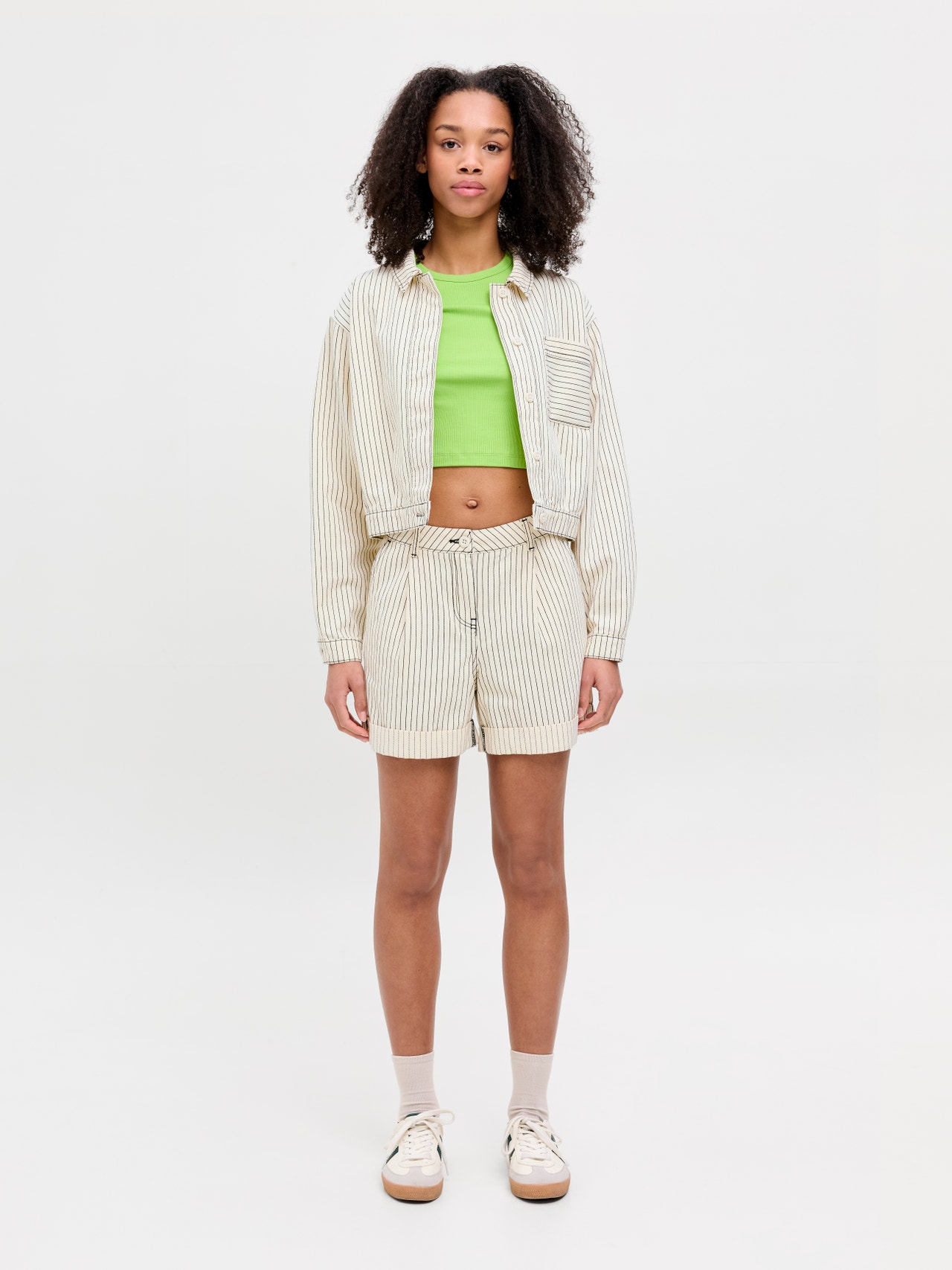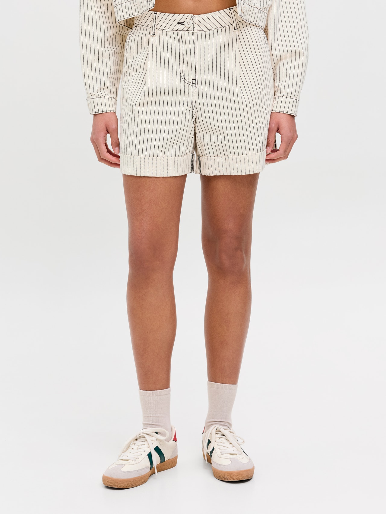 Gardırobunuzu bir chino şort ile güçlendirin. Bu zamansız parça, sıcak havalarda jeanlerle şık ve rahat bir alternatiftir. Dokuma kumaş; örgü kumaşlar gibi esnemeyen güçlü ve dayanıklı bir malzemedir. - Ürün tipi : Şortlar - Kapama/fermuar : Fermuarlı pat kapama - Cepler : Ön cepler - Bel/kalça : Bel ortası - Bacak detayları : Katlanmış etek uçları - Kalıp : Bol Kalıp