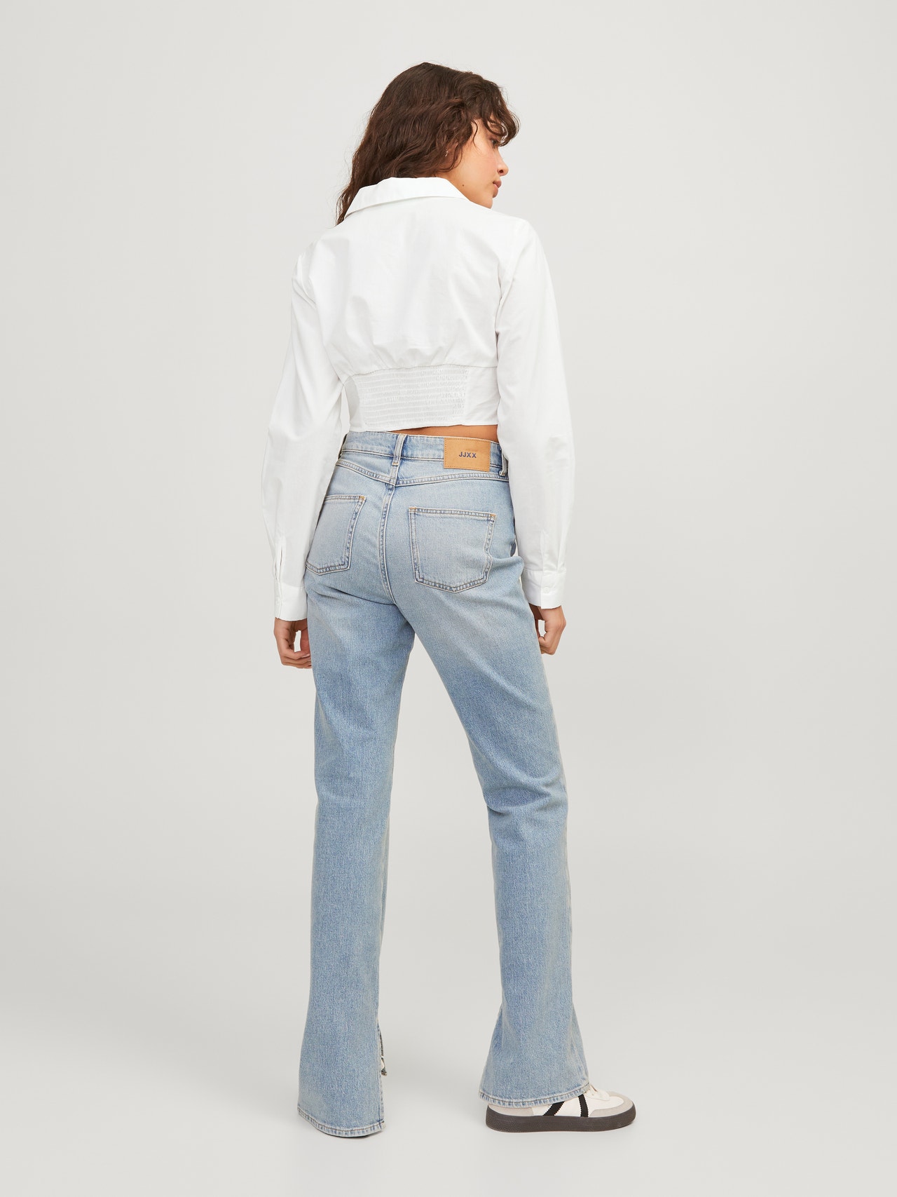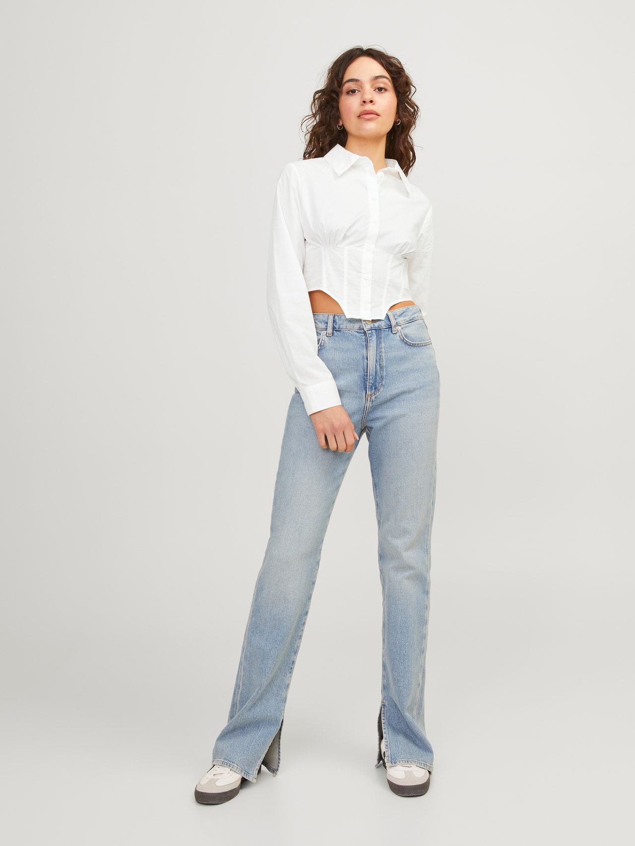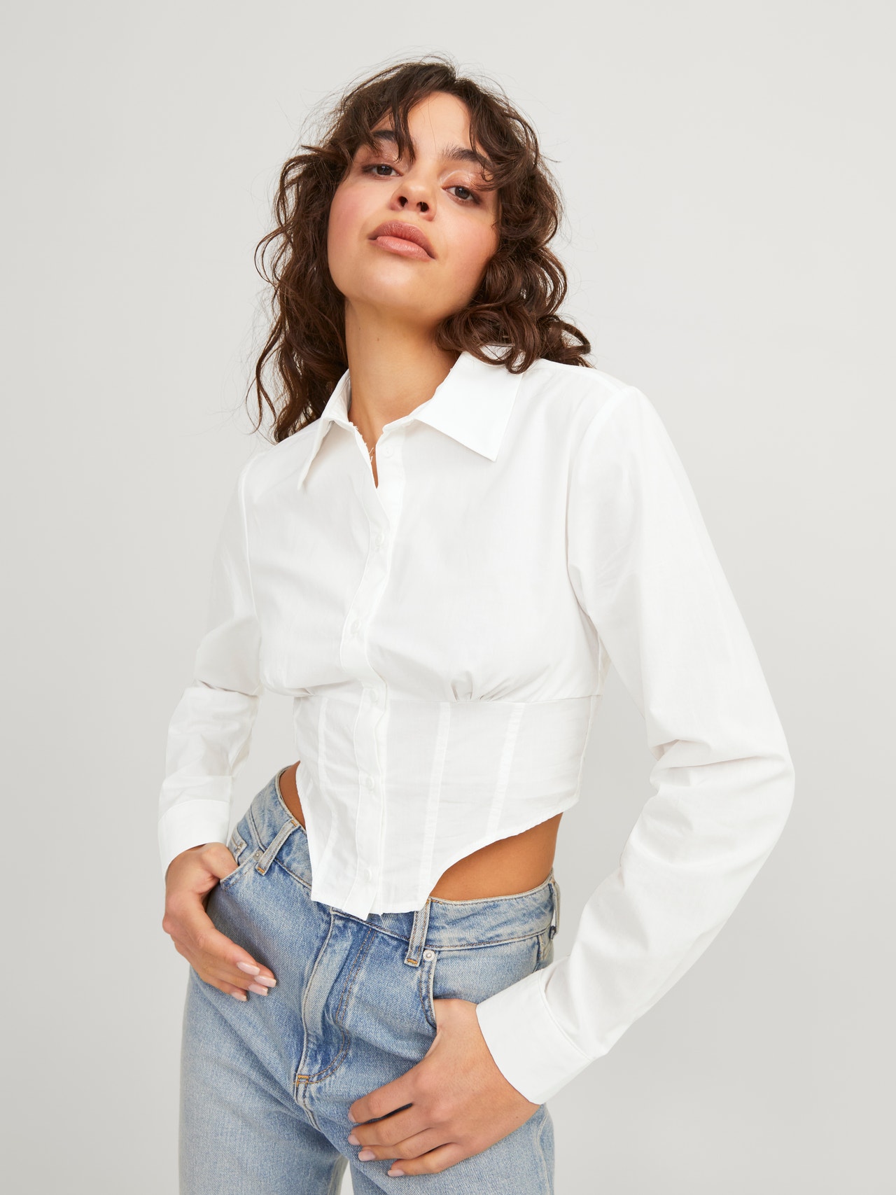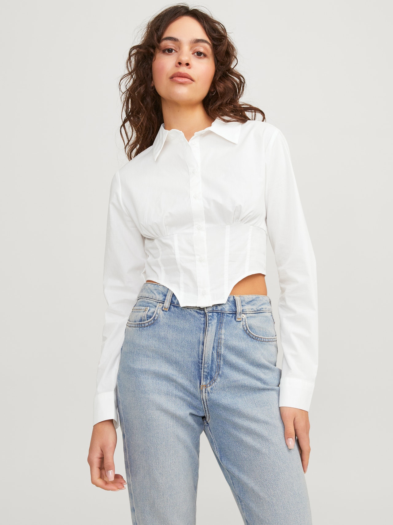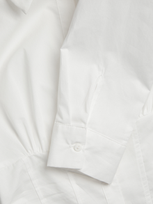 Vücuda oturan resmi bir gömlek, özel günler veya toplantılar için mükemmeldir. Poplin, benzersiz bir görünüm için güçlü bir kumaştır ve ışıldayan bir parlaklığa sahiptir. - Ürün tipi : Poplin gömlek - Boyun : Gömlek Yaka - Kol : Uzun kollu - Kapama/fermuar : Düğmeli kapama - Uzunluk/ölçü : Crop - Ekstra detaylar : Kıvrımlı kenar - Kalıp : Slim Kalıp