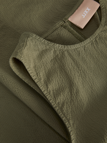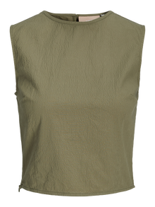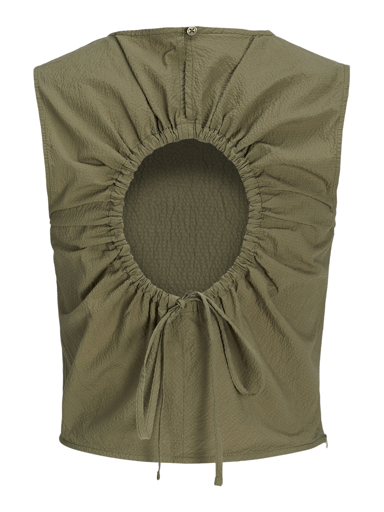 Taze, eğlenceli ve renkli bir görünüm sağlayan hafif plaj stiliyle yaza hazır olun. Gofre kumaş, nefes alabilen ve serinleten bir his için buruşuk görünümlü hafif bir kumaştır. - Ürün tipi : Üst - Boyun : Sıfır Yaka - Kol : Kolsuz - Ekstra detaylar : Büzgü detayı - Kalıp : Slim Kalıp