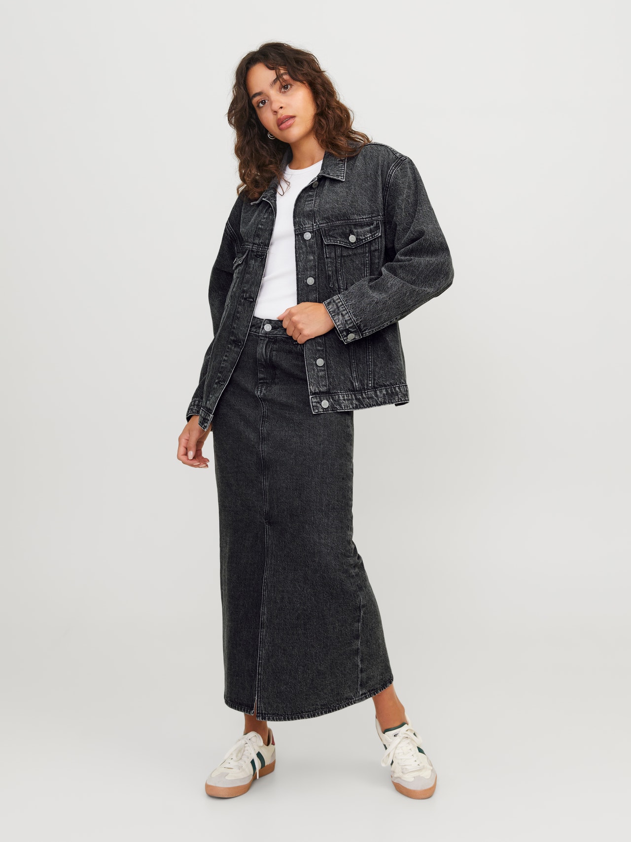Günlük kullanım için kaliteli bir ceketle rahatlığınızı koruyun. Kot kumaşı; birlikte dokunan boyalı çözgü ipliği ve atkı dokuma ipi ile öne çıkan, dayanıklı bir çapraz dokuma kumaştır. - Ürün tipi : Denim ceket - Boyun : V-Yaka - Kol : Uzun kollu - Kollar : Düşük omuzlar - Manşet tipi : Düğmeli manşetler - Kapama/fermuar : Düğmeli kapama - Cepler : Düğmeli göğüs cepleri - Uzunluk/ölçü : Uzun - Yıkama/bitirme : Soluk ve yıpranmış bir görünüm için taş yıkama