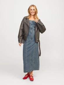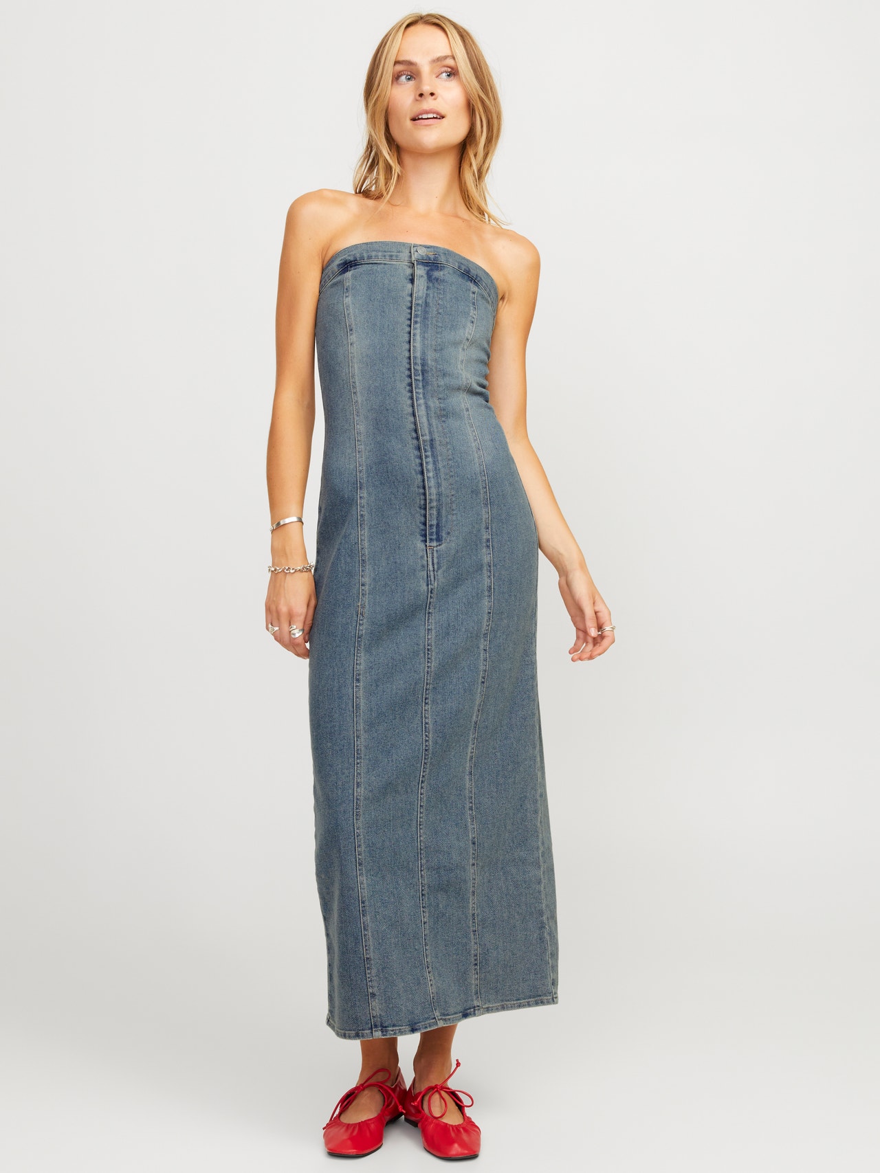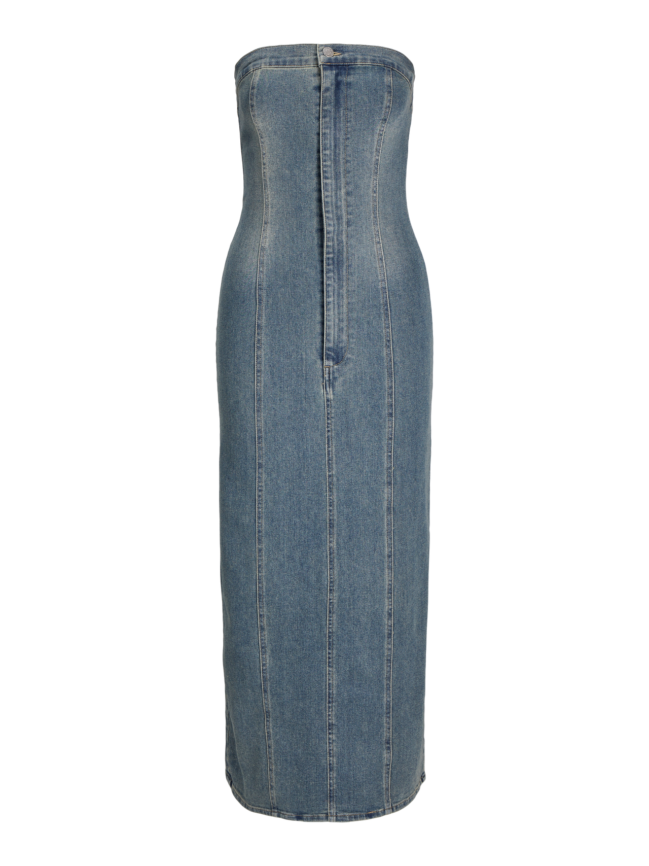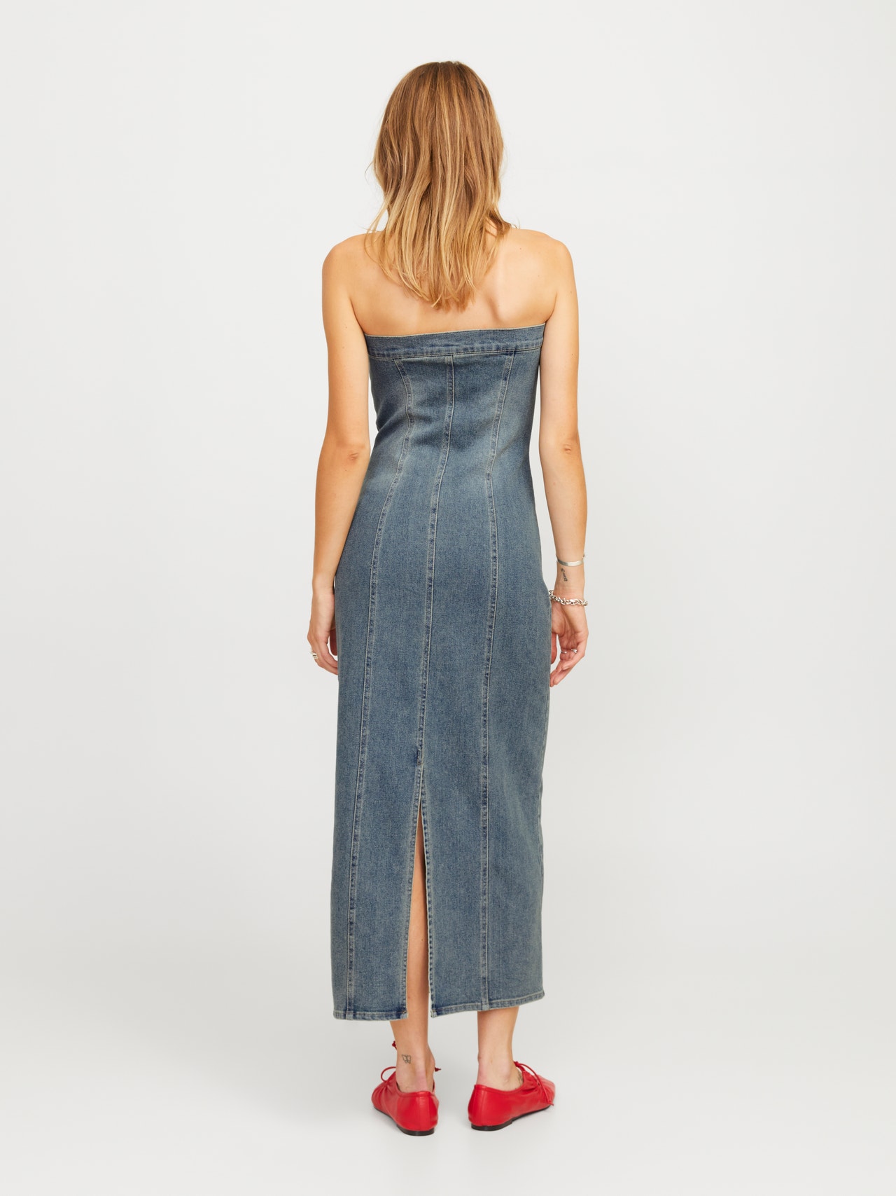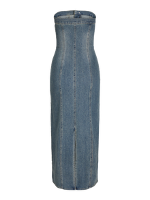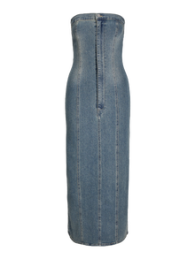 Bu mükemmel parti elbisesi, her özel gün için görünümünüzü tamamlayacak. Denim kumaşı; birlikte dokunan boyalı çözgü ipliği ve atkı dokuma ipi ile öne çıkan, dayanıklı bir çapraz dokuma kumaştır. - Ürün tipi : Denim elbise - Boyun : Düşük Omuz - Kol : Kolsuz - Kapama/fermuar : Fermuarlı kapama - Uzunluk/ölçü : Maksimum uzunluk - Yıkama/bitirme : Soluk ve yıpranmış bir görünüm için taş yıkama - Kalıp : Slim Kalıp