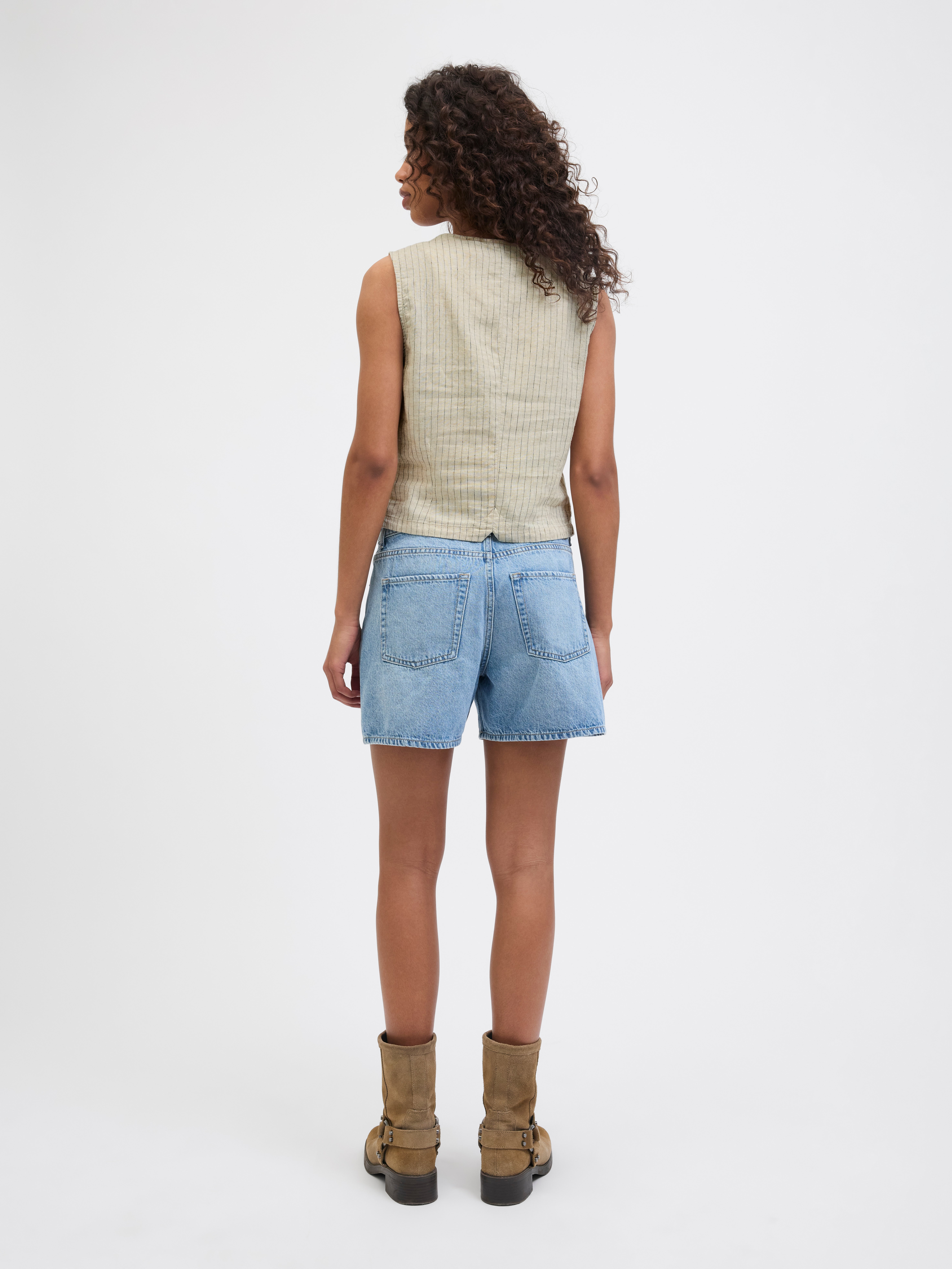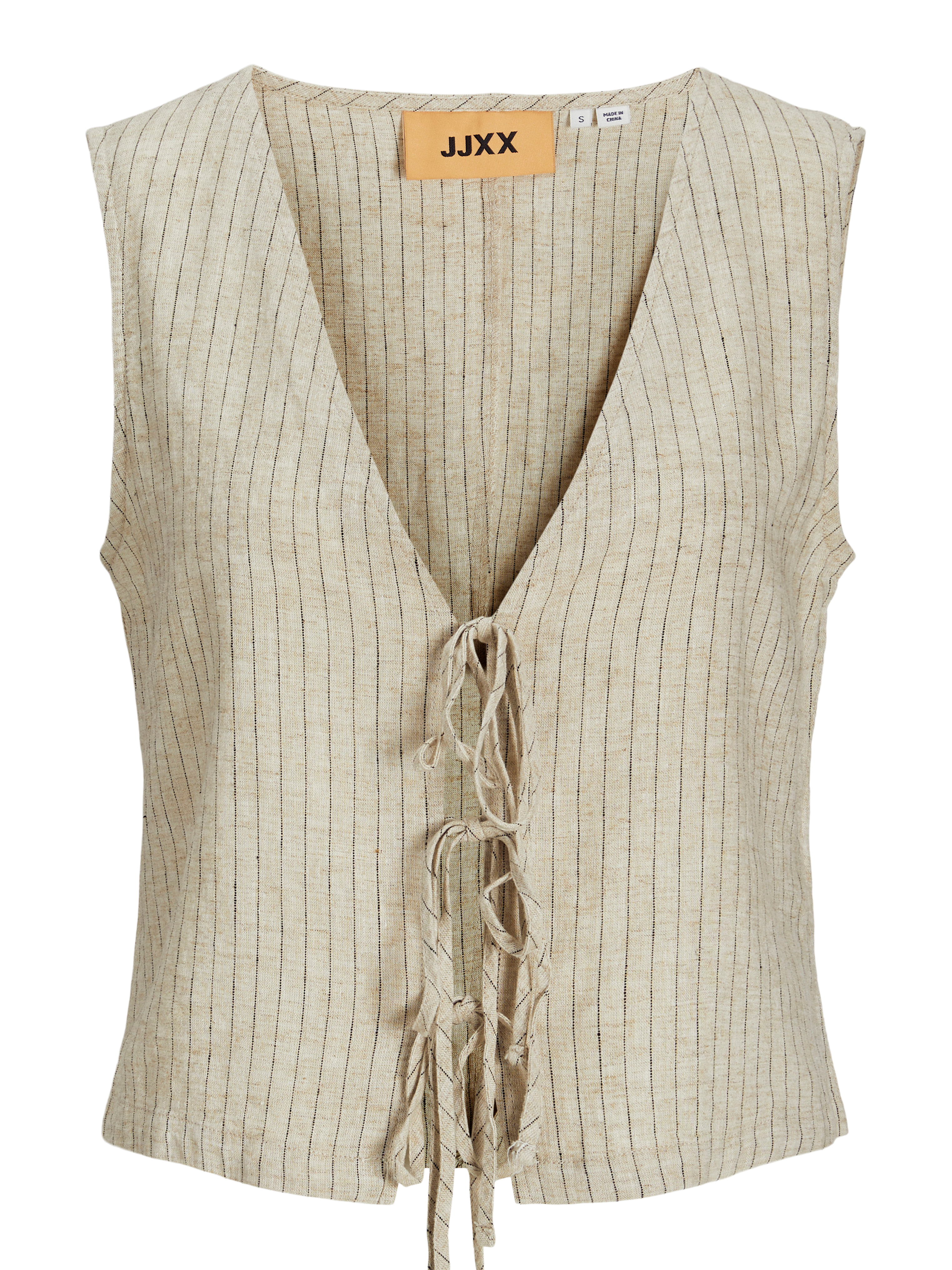 Kadın V Yaka Bağlamalı Keten Yelek - Breeze