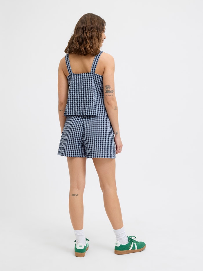 Kadın Kalın Askılı Ekose Desenli Bluz - Petra