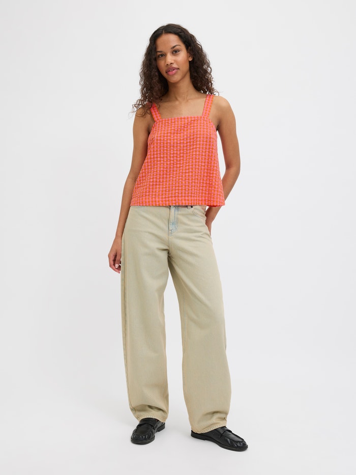Kadın Kalın Askılı Ekose Desenli Bluz - Petra
