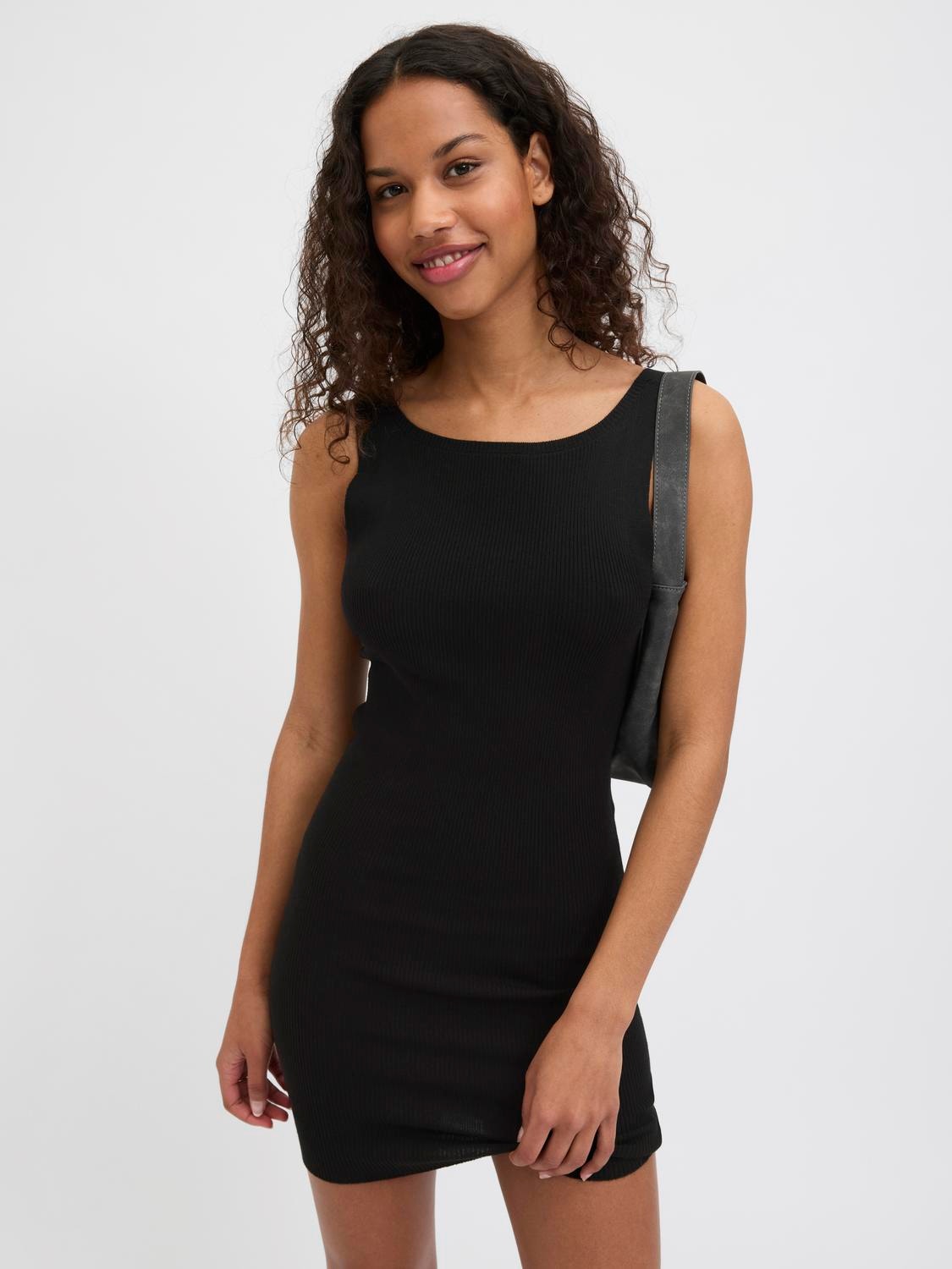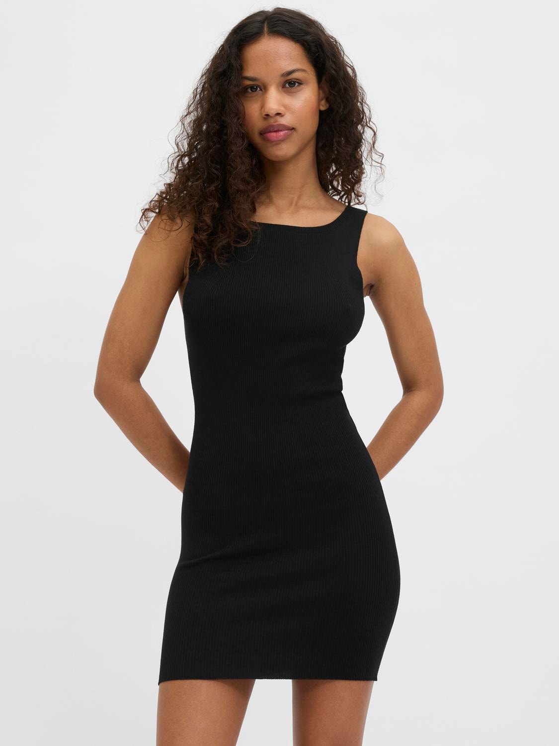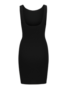 Bu mükemmel parti elbisesi, her özel gün için görünümünüzü tamamlayacak. Ribana örgü dikey çıkıntılara sahiptir ve rahat bir dokunuş sağlamak için çok esnektir. - Ürün tipi : Örgü elbise - Boyun : Kare Yaka - Kol : Kolsuz - Uzunluk/ölçü : Kısa - Kalıp : Dar Kalıp