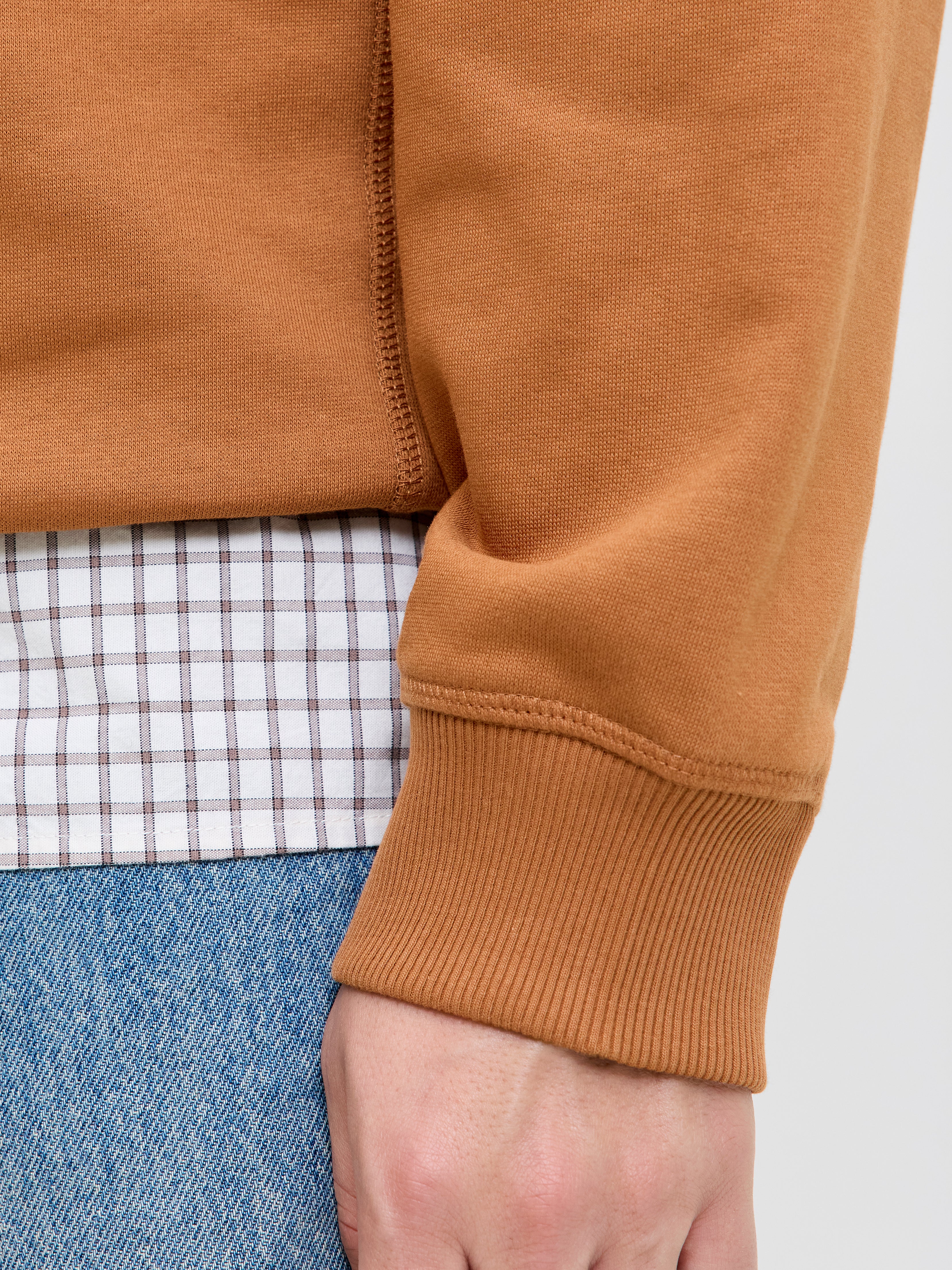 Fırçalanmamış sweat kumaş pürüzsüz bir yüzeye ve rahat bir his için iç kısımda halkalara sahiptir.