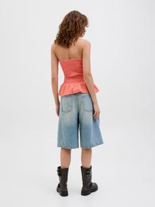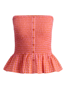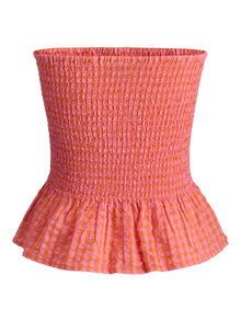 Taze, eğlenceli ve renkli bir görünüm sağlayan hafif plaj stiliyle yaza hazır olun. Gofre kumaş, nefes alabilen ve serinleten bir his için buruşuk görünümlü hafif bir kumaştır. - Ürün tipi : Tüp üst - Boyun : Straplez - Kol : Kolsuz - Ekstra detaylar : Büzgü detayı - Kalıp : Dar Kalıp