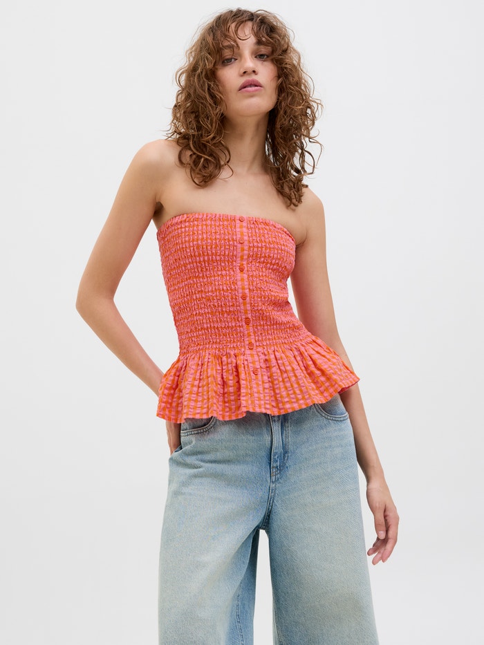Kadın Straplez Düğme Detaylı Bluz - Petra