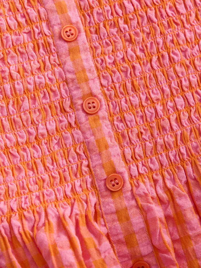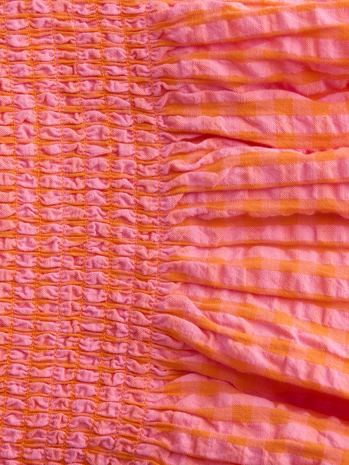 Gofre kumaş, nefes alabilen ve serinleten bir his için buruşuk görünümlü hafif bir kumaştır.