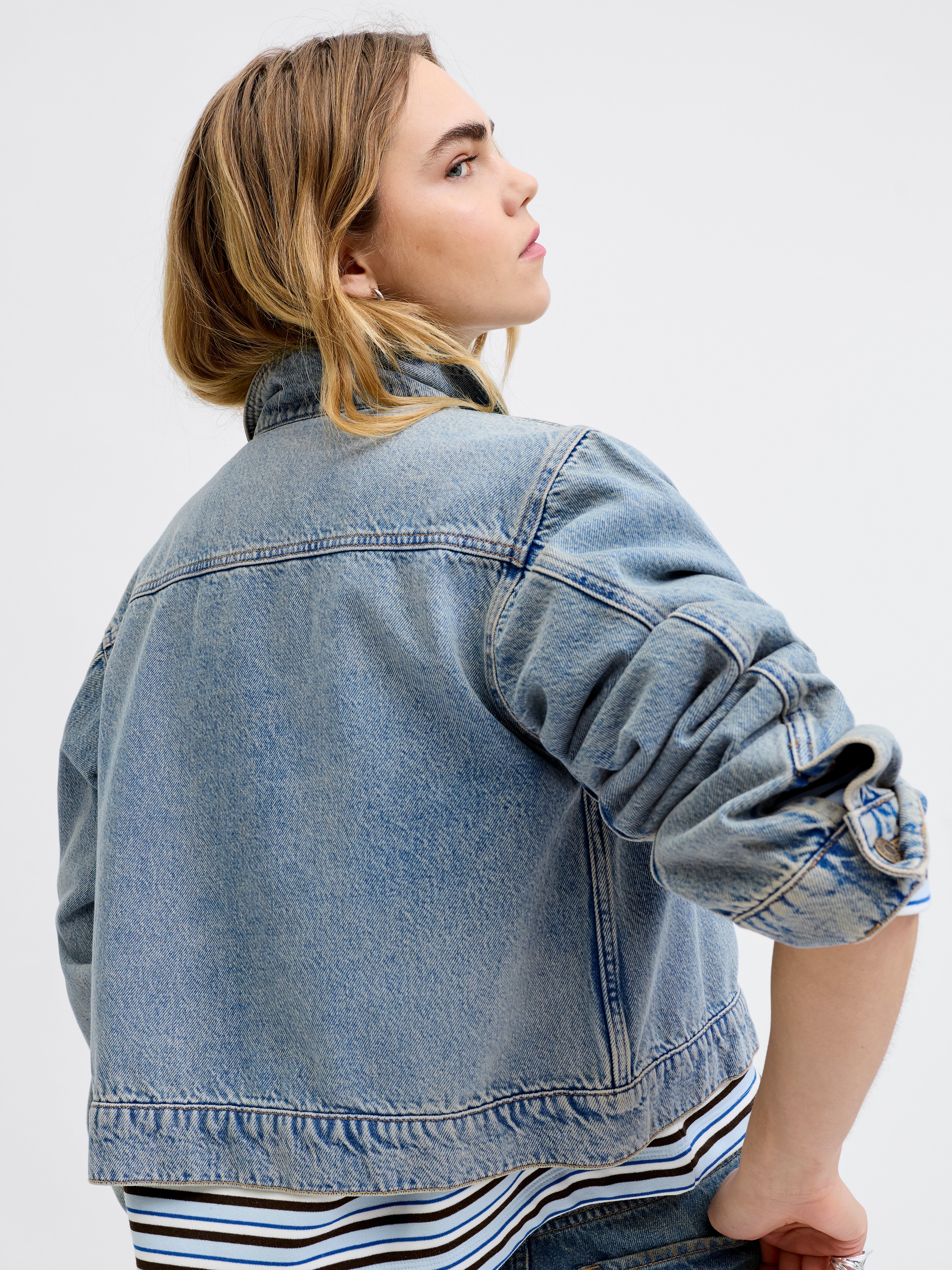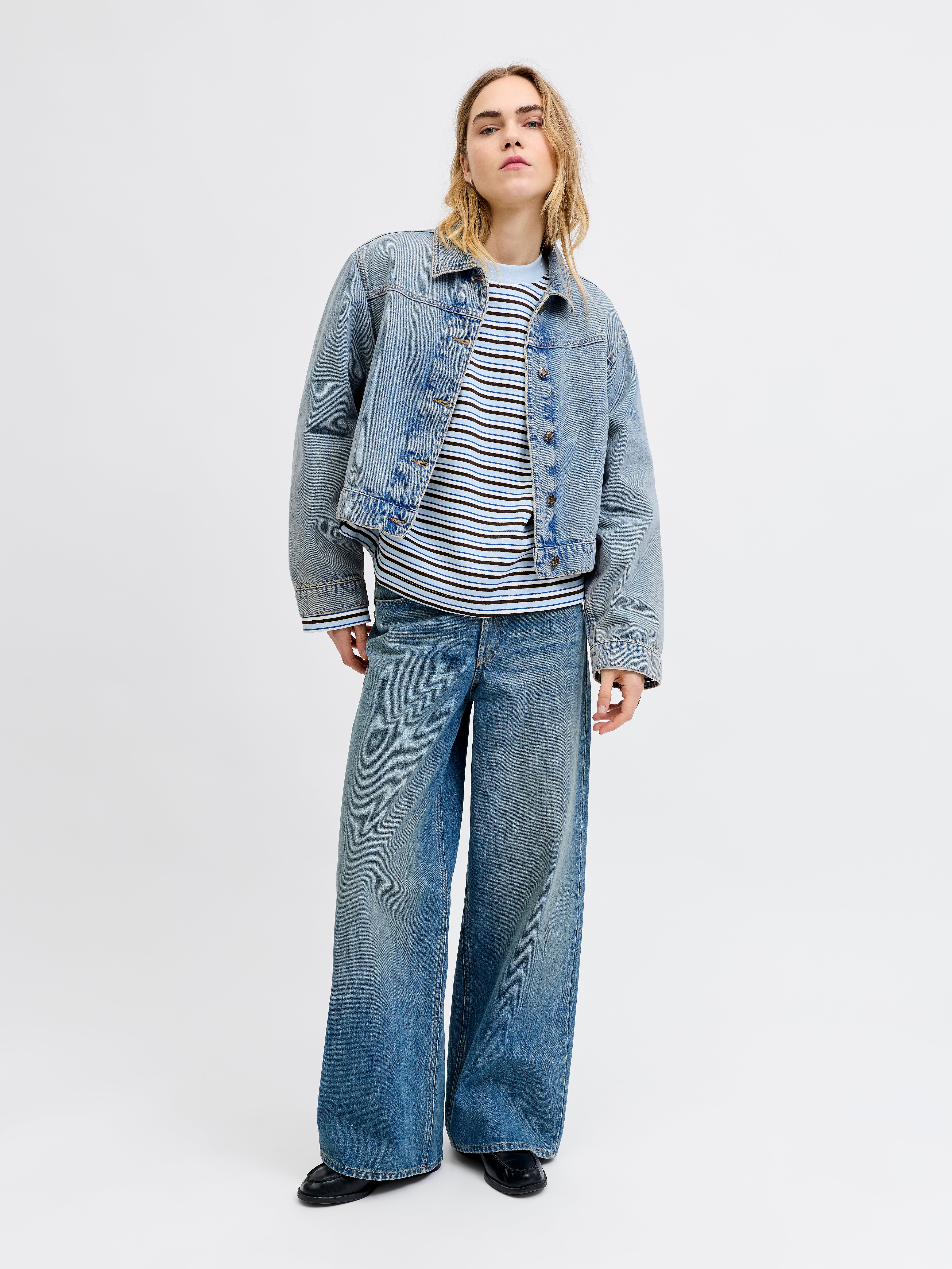 Temel denim parçalarımızla günlük tarzınızı yükseltin. Konfor ve çok yönlülük için tasarlanan bu zamansız parçalar, her gardırop için olmazsa olmazlardandır. Her durum için mükemmel olan bu parçalar, en sevdiğiniz diğer sabit parçaları zahmetsizce tamamlar.