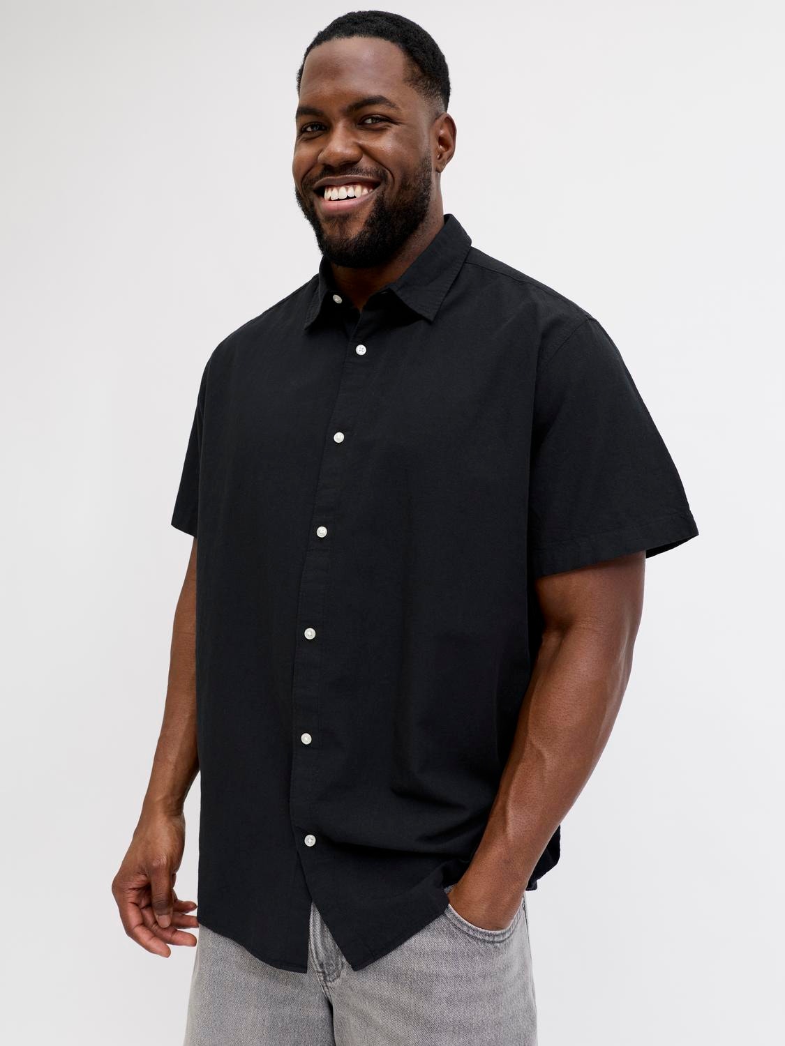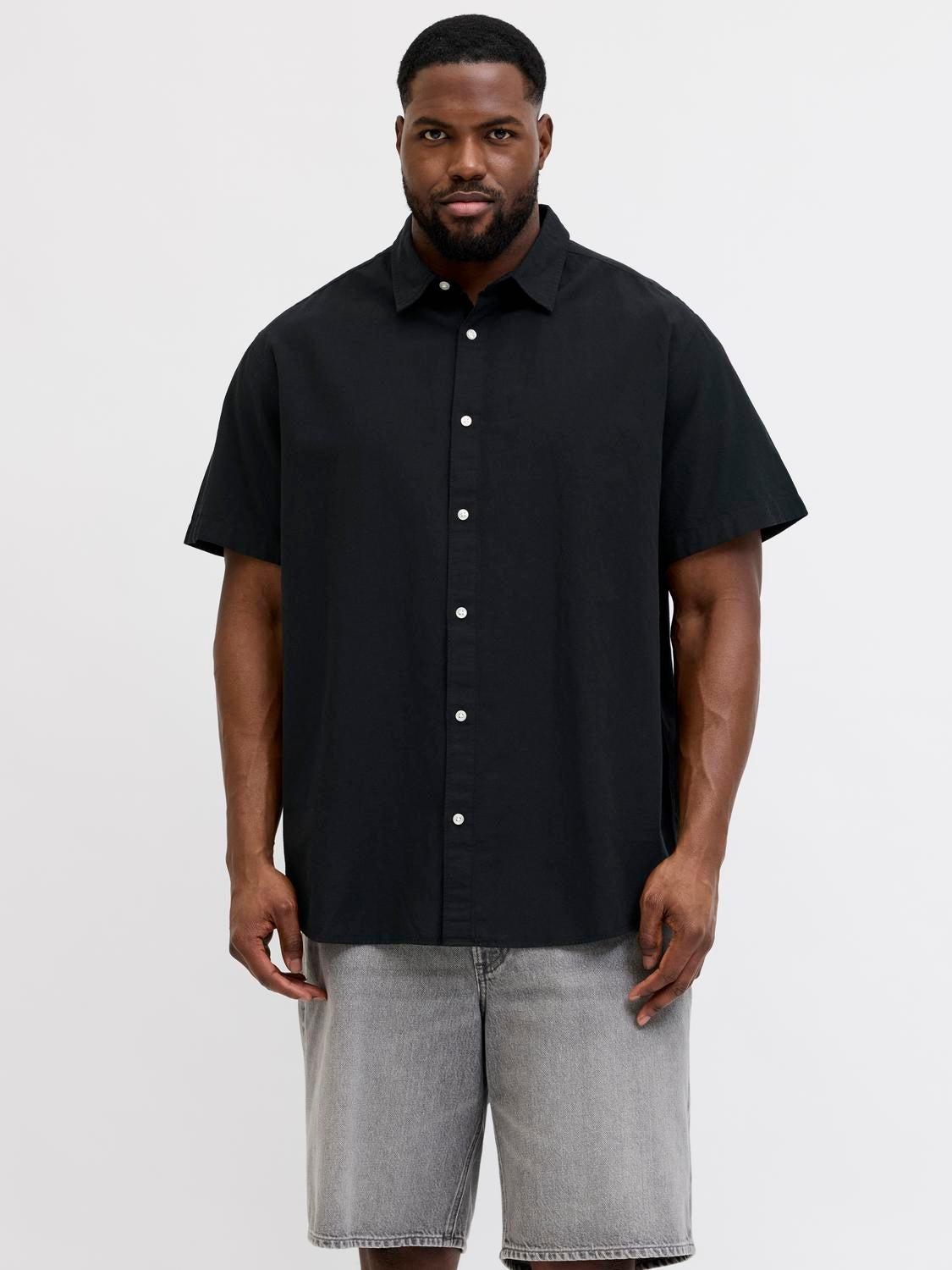 Büyük Beden Keten Karışımlı Gömlek - Breeze